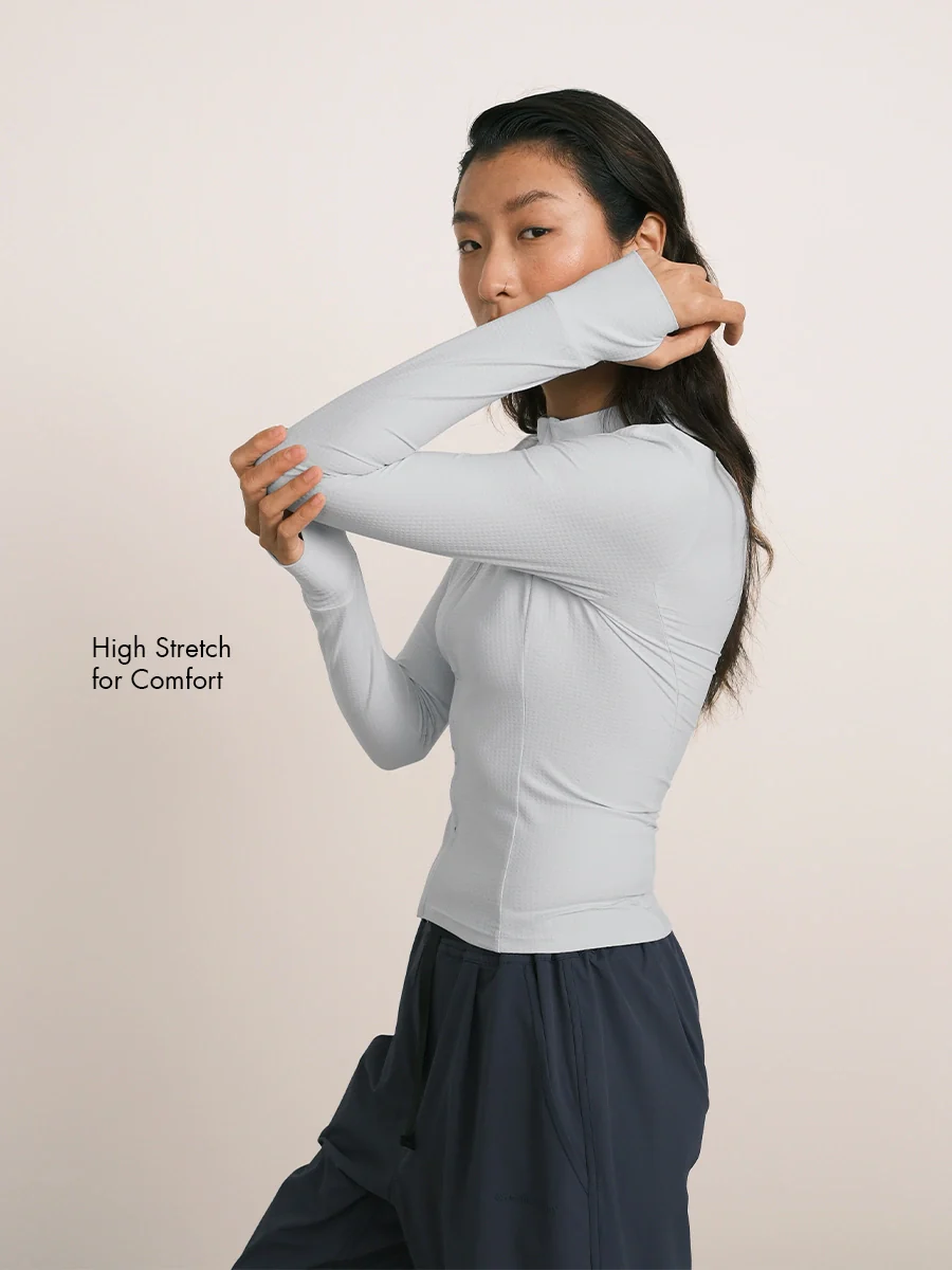 -70%Cooling Grid Tech Zip-Up Fitted Thumbhole Top—